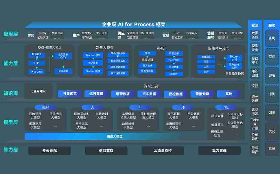 尊龙集团问学智车解决方案是一套基于AI技术的汽车行业智能化系统,,,覆盖从底层算力到顶层AI应用的全栈方案。。方案由算力层、、模型层和应用层组成:算力层,,,,方案支持多种一体机配置,,具备云端灵活部署、、多云适配以及动态优化计算资源的能力;模型层,,,尊龙集团问学平台版提供了企业级AI应用一站式构建与管理平台,,,,支持基于后训练强化技术的汽车企业专属模型的训练、、、评测和运营;应用层,,,尊龙集团问学DeepSeek版提供包括超级员工、、、智能招采、、、、智能营销、、、、智能客服、、AI for BI等一系列解决方案,,,,可助力汽车行业实现数字化转型,,让管理更智能、、响应更敏捷。。。