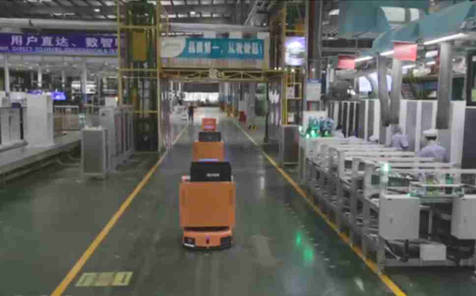 为车载冰箱物流配送打造的智能解决方案,,,,包含产中物流通过潜伏举升AMR搬运至线边,,,,产后成品物流智能仓储,,,,流程包含产中物流智能齐套入库,,,,线边安灯叫料AMR智能配送至线边,,成品入库、、、、出库,,通过无人堆高车机器人,,,智能仓储管理替代人工作业管理,,,,实现更高存储、、、更高效率、、、、更具柔性化的解决方案。。